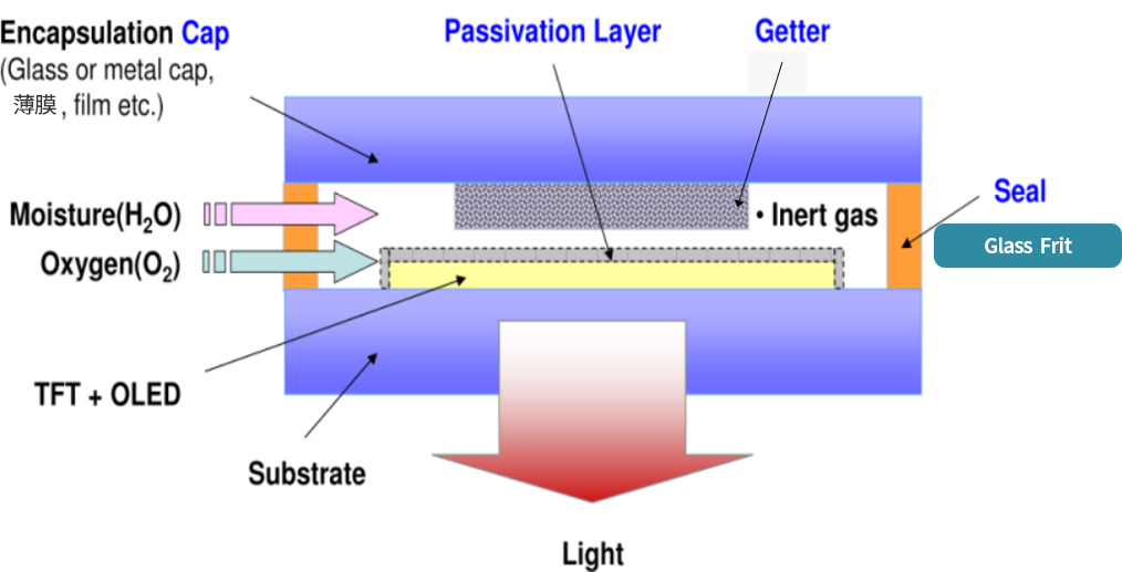 具有OLED器件密封所需的低热特性、高Laser吸收率及与基板玻璃不具有热应力的 Matching性.Organic Light